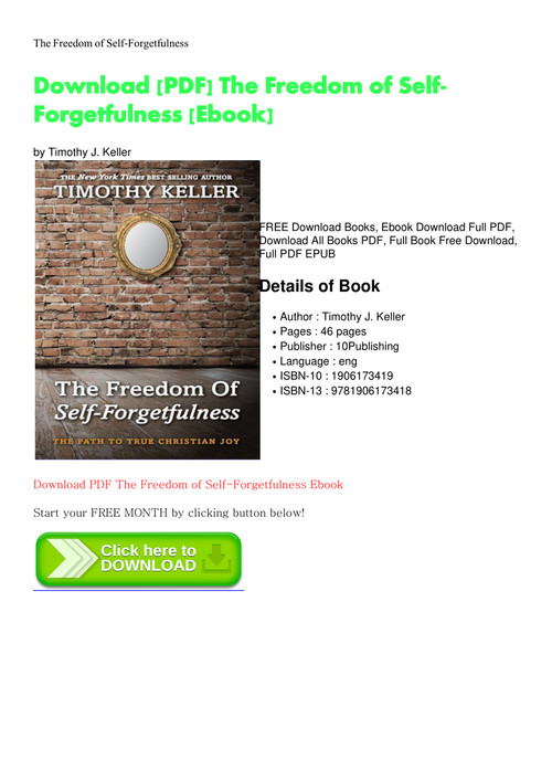 The Freedom Of Self Forgetfulness Timothy J Keller Shop Online