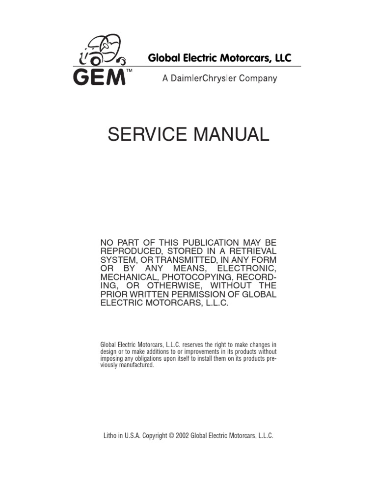 Gem Golf Cart Electric Car 1999 2007 Factory Service Manual Tradebit